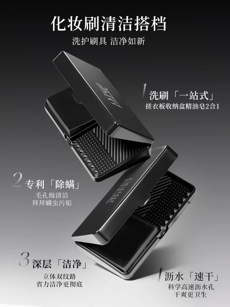 荔树迷你洗刷搓衣板化妆刷清洁盒皂除螨神器便携式粉扑笔粉底专用